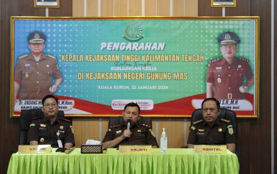 TribunBorneo.com||Gunung Mas- Dr. Undang Mugopal, SH., M.Hum., Kajati Kalteng, memimpin kunjungan kerja ke Kejaksaan Negeri Gunung Mas, didampingi oleh Ny....